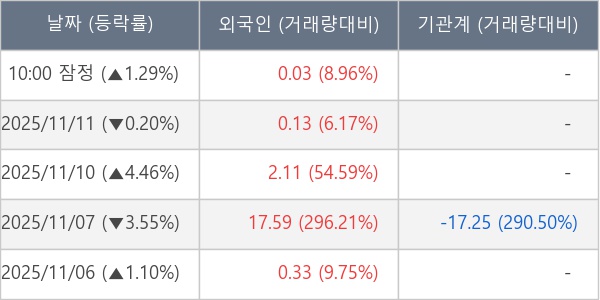 [표] 외국인ㆍ기관 순매매량 (단위 만주)