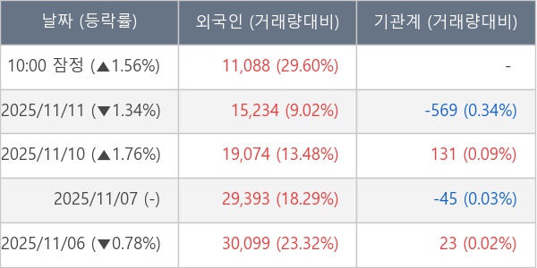 [표] 외국인ㆍ기관 순매매량 (단위 주)