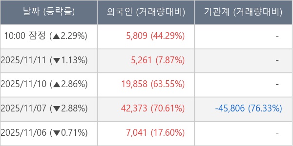 [표] 외국인ㆍ기관 순매매량 (단위 주)