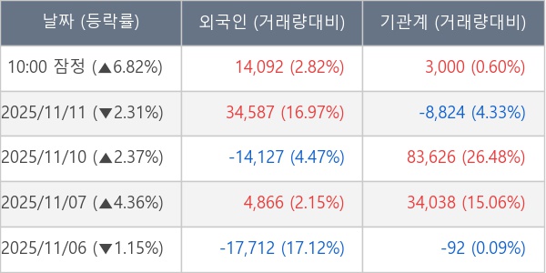 ※ 사모펀드 등 일부 기관의 순매매량은 표시되지 않음