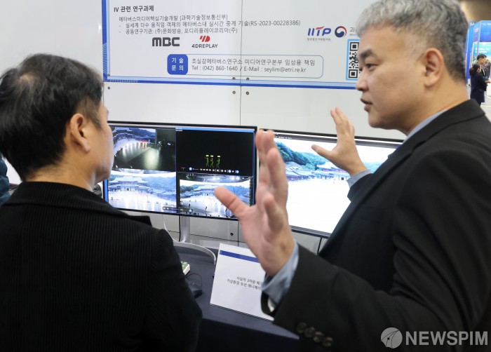 [고양=뉴스핌] 최지환 기자 = 12일 고양 킨텍스에서 열린 2025 대한민국 가상융합산업대전(KMF2025)에서 관람객들이 전자통신연구원 부스를 둘러보고 있다. 'AI와 만난 가상융합, 모두의 일상이 되다!'를 주제로 열린 'KMF2025'는 오는 14일까지 3일간 진행된다. 2025.11.12 choipix16@newspim.com