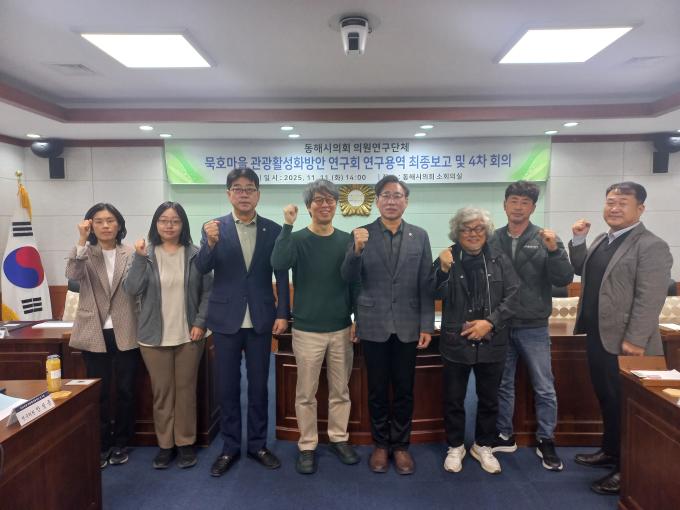 이번 회의에는 정동수 대표의원과 이형재 자문위원, 관련 부서 팀장 등 11명이 참석해 연구용역 최종보고를 청취하고 의견을 교환했다. 정동수 의원은 보고를 통해 묵호마을 내 분산된 관광자원을 효과적으로 연결하는 방안이 지속 가능한 관광모델 개발에 기여할 것으로 기대한다고 밝혔다.