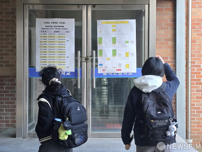 [무안=뉴스핌] 조은정 기자 = 2026학년도 대학수학능력시험이 시행된 13일 오전 전남 무안군 남악고등학교에 마련된 전남도교육청 제73지구 제8시험장에서 수험생들이 시험장 위치를 확인하고 있다. 2025.11.13 ej7648@newspim.com