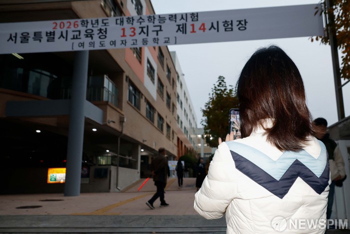 [서울=뉴스핌] 류기찬 기자 = 2026학년도 대학수학능력시험이 실시된 13일 오전 서울 영등포구 여의도여자고등학교에서 학부모들이 수험생들의 입실을 지켜보고 있다. 2025.11.13 ryuchan0925@newspim.com