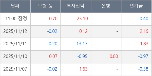 [표] 주요 기관별 순매매량 (단위 만주)