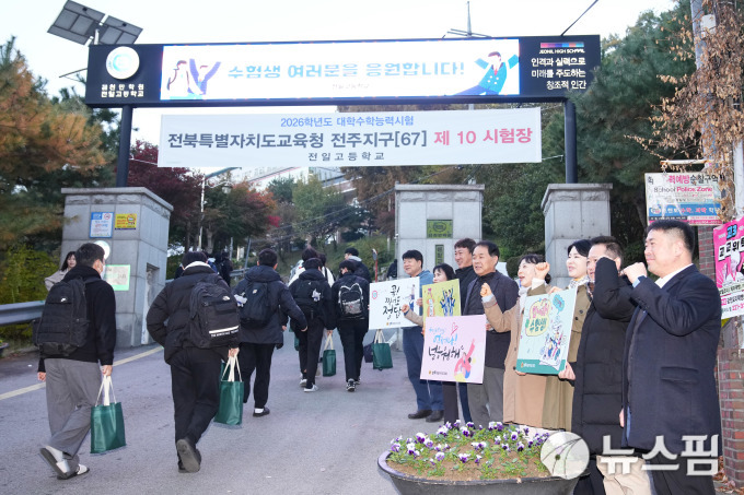 [전주=뉴스핌] 이백수 기자 = 전북특별자치도의회 교육위원회가 13일 수능 응시자들을 응원하기 위해 시험장을 방문, 응원을 전달했다.