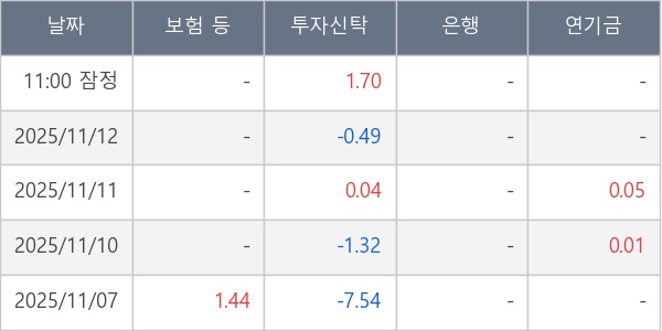 ※ 사모펀드 등 일부 기관의 순매매량은 표시되지 않음