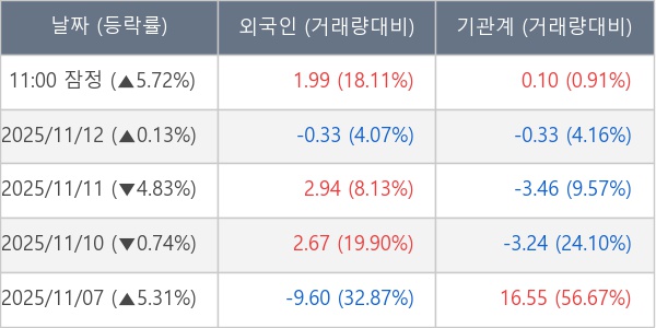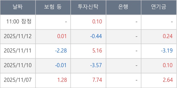 [표] 주요 기관별 순매매량 (단위 만주)