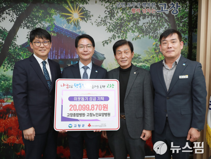 고창종합병원과 고창군어린이집연합회가 각각 2009만9870원과 100만원의 이웃돕기 성금을 고창군에 기탁했다. 이 성금은 전북공동모금회를 통해 지역 내 저소득 취약계층에게 전달될 예정이다.