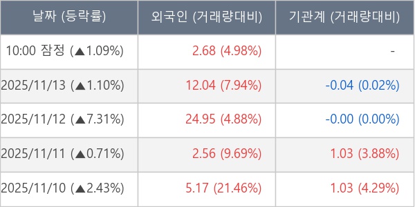 [표] 외국인ㆍ기관 순매매량 (단위 만주)