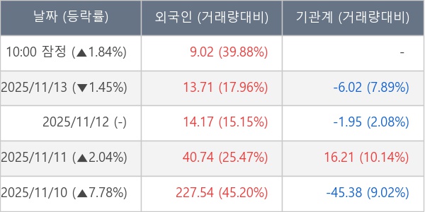 [표] 외국인ㆍ기관 순매매량 (단위 만주)