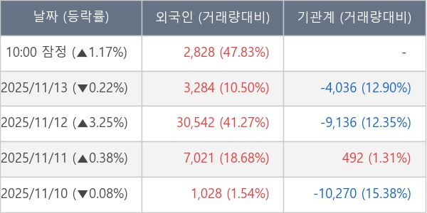 [표] 외국인ㆍ기관 순매매량 (단위 주)