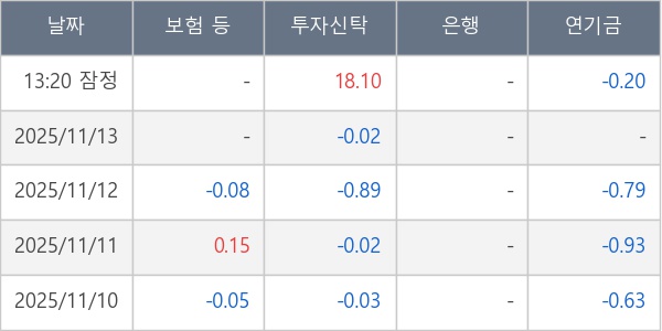[표] 주요 기관별 순매매량 (단위 주)
