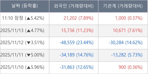 ※ 사모펀드 등 일부 기관의 순매매량은 표시되지 않음
