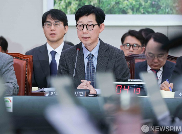 [서울=뉴스핌] 윤창빈 기자 = 박윤주 외교부 1차관이 14일 서울 여의도 국회에서 열린 외교통일위원회 전체회의에서 의원 질문에 답변하고 있다. 2025.11.14 pangbin@newspim.com