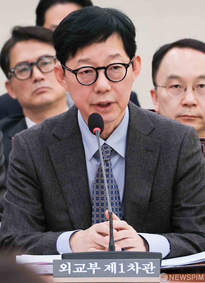 [서울=뉴스핌] 윤창빈 기자 = 박윤주 외교부 1차관이 14일 서울 여의도 국회에서 열린 외교통일위원회 전체회의에서 의원 질문에 답변하고 있다. 2025.11.14 pangbin@newspim.com