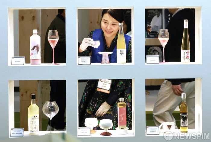 [서울=뉴스핌] 김학선 기자 = 14일 서울 양재동 aT센터에서 열린 '2025 대한민국 우리술 대축제' 행사장에 우리술 품평회 수상작이 전시되어 있다. 올해로 15회째를 맞는 우리술 대축제는 매년 2만여 명이 찾는 대표적인 우리술 행사다. 2025.11.14 yooksa@newspim.com