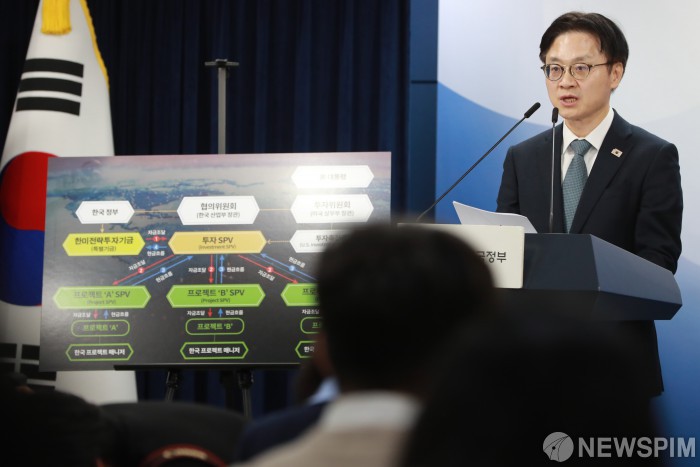 [서울=뉴스핌] 이형석 기자 = 김정관 산업통상부 장관이 14일 오전 서울 종로구 정부서울청사에서 한미 MOU 관련 브리핑을 하고 있다. 2025.11.14 leehs@newspim.com