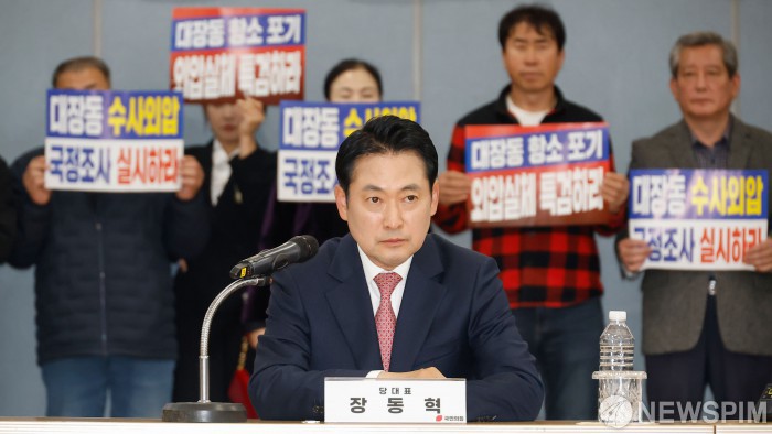 [성남=뉴스핌] 류기찬 기자 = 장동혁 국민의힘 대표가 14일 오후 경기 성남시 분당구 성남도시개발공사에서 열린 ‘대장동 개발비리 항소포기 규탄 현장 간담회’에서 생각에 잠겨 있다. 2025.11.14 ryuchan0925@newspim.com
