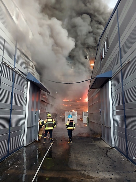 현재 일반 철골조 1890평 규모 3층 건물 1동이 불길에 휩싸여 있다.