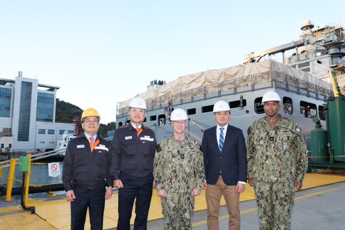 커들 총장은 이날 한화오션이 MRO 작업 중인 미 해군 보급함인 '찰스 드류함' 앞에서 세계 최고 수준의 대형 조선 인프라를 가진 한화오션의 사업 역량을 치켜세우며 양국의 조선 협력이 한미동맹을 더욱 굳건히 할 것이라고 강조했다.