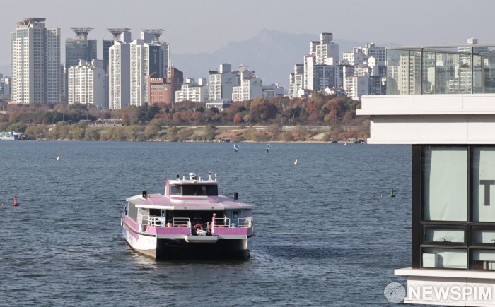 [서울=뉴스핌] 양윤모 기자 = 16일 한강버스가 서울 송파구 잠실선착장 부근 강바닥에 걸려 멈춰있다. 김민석 국무총리는 서울 한강버스가 강바닥에 걸려 멈춘 사고와 관련해 한강버스 운항 안전 체계를 재점검하라고 지시했다. 2025.11.16 yym58@newspim.com