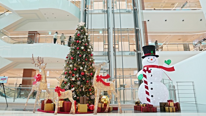 성탄 트리는 높이 5m 크기로, 옆에는 크리스마스 분위기를 느낄 수 있도록 사슴과 눈사람 모형도 함께 설치됐다.