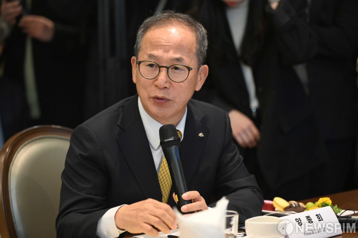 [서울=뉴스핌] 최지환 기자 = 양종희 KB금융지주 회장이 17일 오후 서울 영등포구 산업은행 별관에서 열린 '국민성장펀드의 성공을 위한 금융기관간 업무협약식'에서 인사말을 하고 있다. 2025.11.17 choipix16@newspim.com