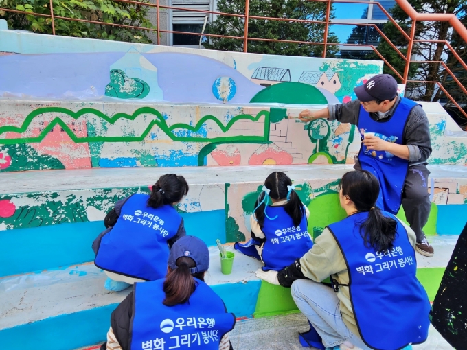 활동에 참여한 직원은 "예쁜 벽화를 통해 지역 주민들에게 작은 선물을 드리고 싶어 봉사에 나섰다"며 "아이들이 우리은행 캐릭터를 보고 행복해하는 모습을 보며 뿌듯함을 느꼈다"고 말했다.