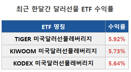 美달러선물레버리지 ETF 한달새 5% 이상 수익