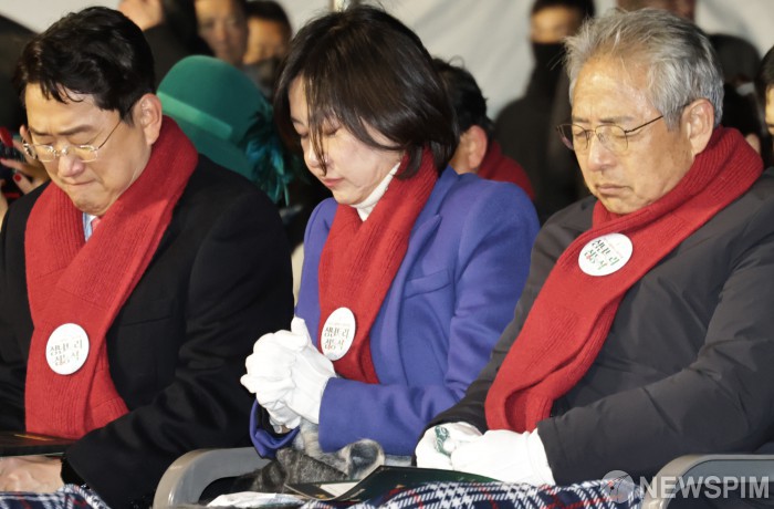 [서울=뉴스핌] 양윤모 기자 = 허은아 대통령실 국민통합비서관이 17일 저녁 서울광장에서 개최된 '2025 대한민국성탄축제 서울광장 성탄트리 점등식'에 참석해 기도를 하고 있다. 이날 행사에는 오세훈 서울시장, 허 대통령실 국민통합비서관