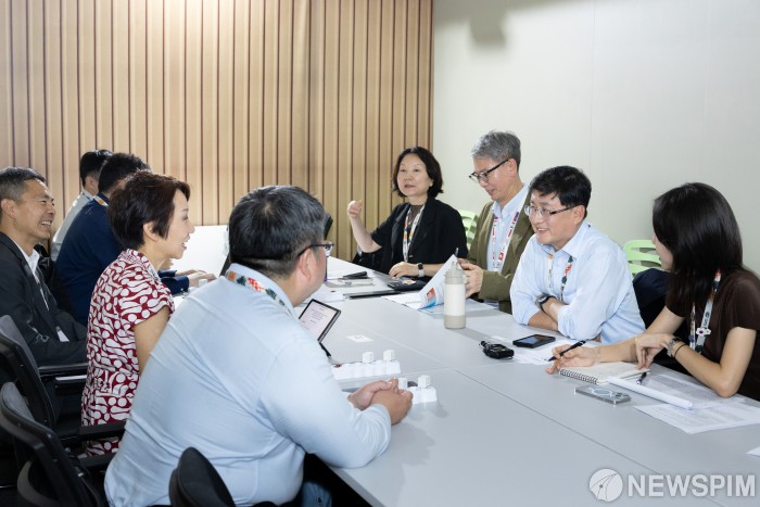 [서울=뉴스핌] 김성환 기후에너지환경부 장관이 17일(현지시간) 브라질 벨렝에서 열린 제30차 유엔기후변화협약당사국총회(COP30)에서 그레이스 푸 하이 엔 싱가포르 지속가능환경부 장관과 COP30 전망과 폐기물 관리를 논의하고 있다. [사진=기후에너지환경부] 2025.11.18 photo@newspim.com
