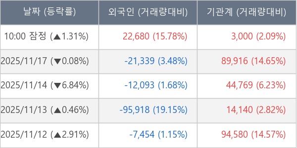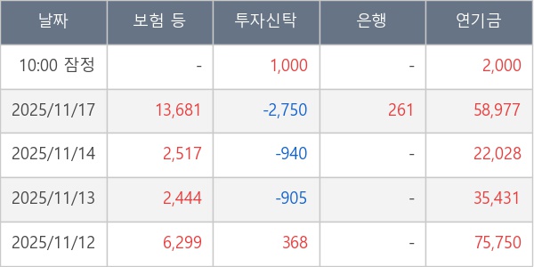 [표] 주요 기관별 순매매량 (단위 주)