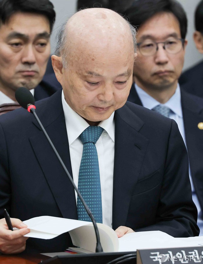 [서울=뉴스핌] 윤창빈 기자 = 안창호 국가인권위원장이 18일 서울 여의도 국회에서 열린 운영위원회 전체회의에서 자료를 살펴보고 있다. 2025.11.18 pangbin@newspim.com