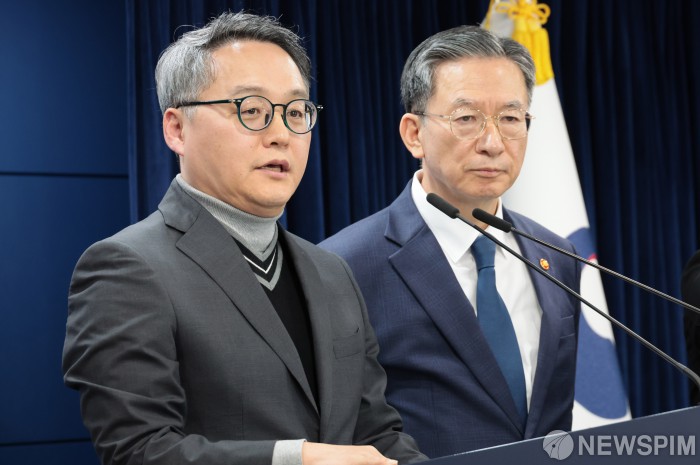 [서울=뉴스핌] 이길동 기자 = 정홍식 법무부 국제법무국장이 18일 서울 종로구 정부서울청사에서 '론스타' ISDS 취소 신청 관련 긴급 브리핑에서 국제투자분쟁해결센터(ICSID)의 론스타 ISDS 취소위원회로부터 대한민국 승소 결정 선고와 관련 발언을 하고 있다.2025.11.18 gdlee@newspim.com