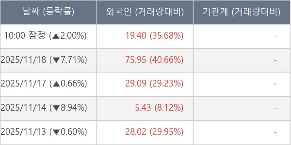 [표] 외국인ㆍ기관 순매매량 (단위 만주)