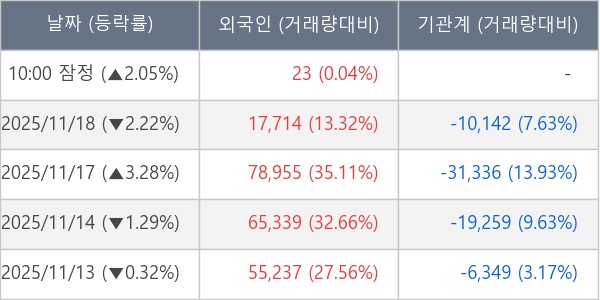 [표] 외국인ㆍ기관 순매매량 (단위 주)