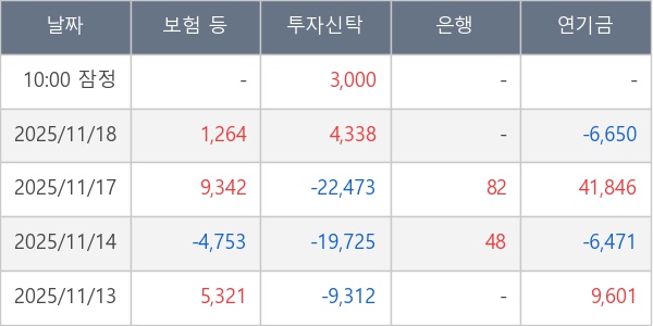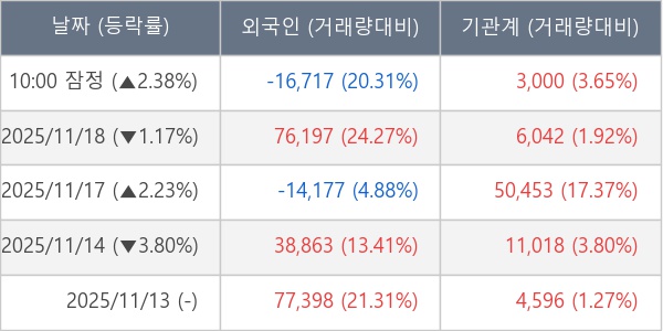 ※ 사모펀드 등 일부 기관의 순매매량은 표시되지 않음