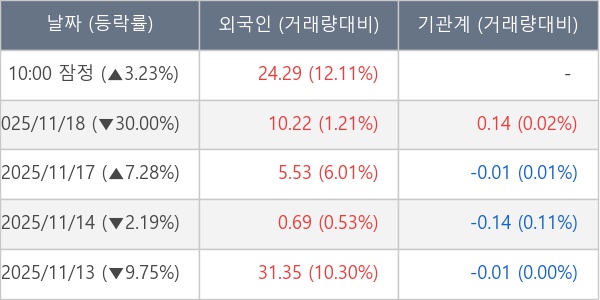 [표] 외국인ㆍ기관 순매매량 (단위 만주)