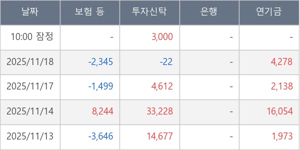 ※ 사모펀드 등 일부 기관의 순매매량은 표시되지 않음