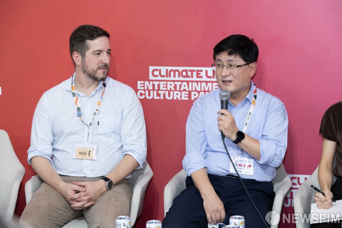 [서울=뉴스핌] 김성환 기후에너지환경부 장관이 18일(현지시간) 브라질 벨렝에서 열린 제30차 유엔기후변화협약당사국총회(COP30) 부대행사로 브라질 한국문화원이 주관한 'K-POP 기후행동'에서 기조연설을 하고 있다. [사진=기후에너지환경부] 2025.11.19 photo@newspim.com