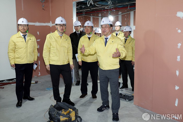 [서울=뉴스핌] 윤호중 행정안전부 장관이 19일 부산 동구 수정동에 위치한 해양수산부 임시청사 이전 예정지를 방문해 준비상황을 점검하고 있다. [사진=행정안전부] 2025.11.19 photo@newspim.com