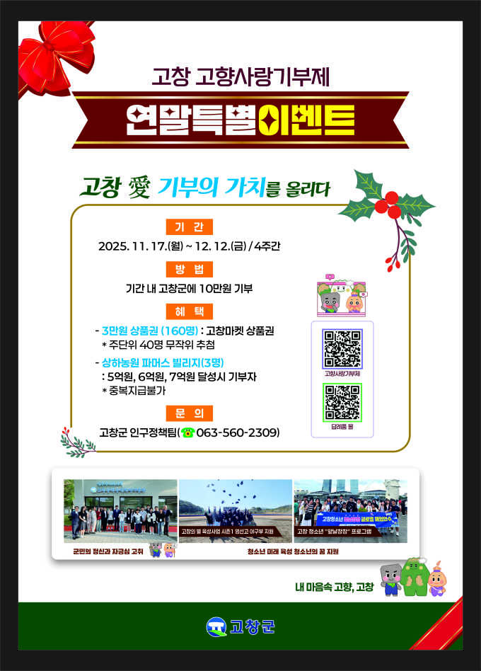 | 고창 고향사랑기부제 이벤트 연말 포스터[사진=고창군] 2025.11.20 gojongwin@newspim.com |