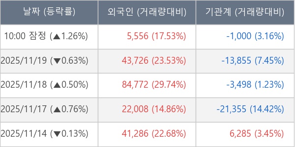 ※ 사모펀드 등 일부 기관의 순매매량은 표시되지 않음