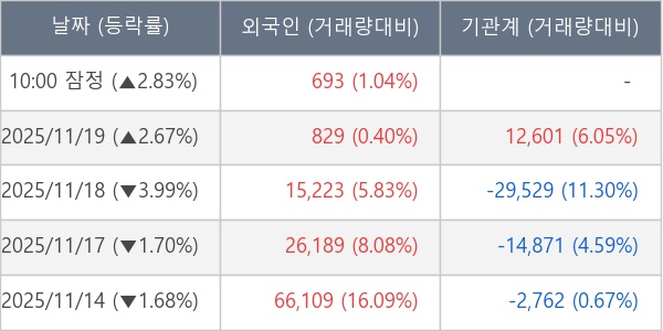 [표] 외국인ㆍ기관 순매매량 (단위 주)
