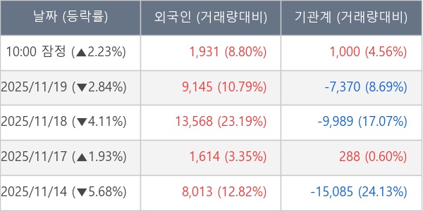 ※ 사모펀드 등 일부 기관의 순매매량은 표시되지 않음