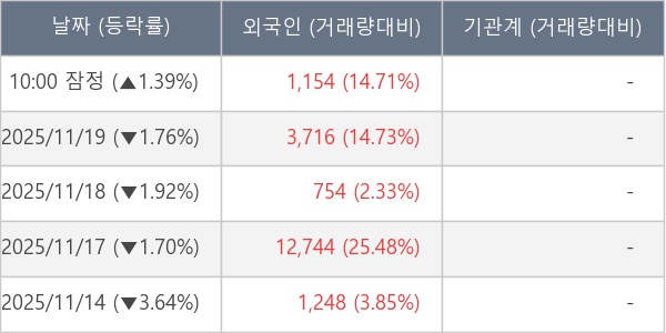 [표] 외국인ㆍ기관 순매매량 (단위 주)