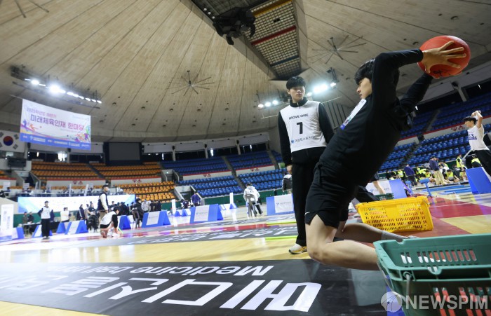[서울=뉴스핌] 최지환 기자 = 20일 오전 서울 송파구 서울특별시교육청 학생체육관에서 열린 2025학년도 하반기 미래체육인재 한마당에서 체육계열 대학교 진학 희망자들이 체력측정을 하고 있다. 2025.11.20 choipix16@newspim.com