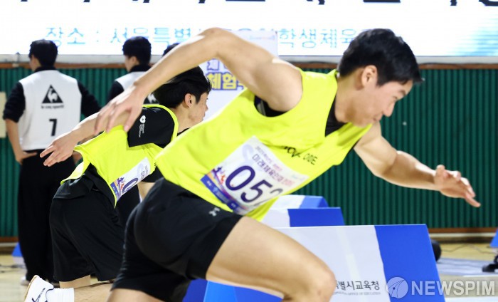 [서울=뉴스핌] 최지환 기자 = 20일 오전 서울 송파구 서울특별시교육청 학생체육관에서 열린 2025학년도 하반기 미래체육인재 한마당에서 체육계열 대학교 진학 희망자들이 체력측정을 하고 있다. 2025.11.20 choipix16@newspim.com