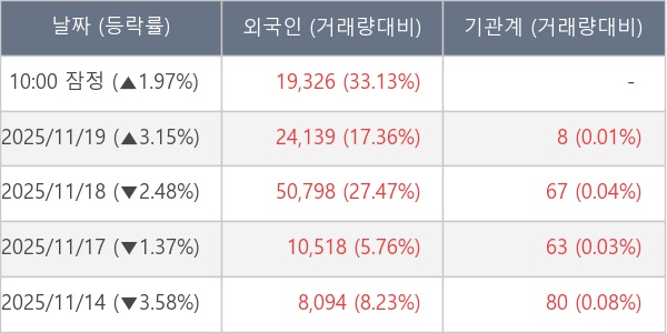 [표] 외국인ㆍ기관 순매매량 (단위 주)